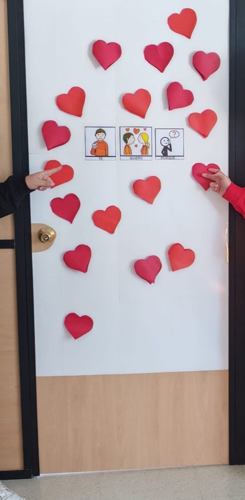 Para el día de San Valentín, el 14 de febrero de 2026, durante los días previos, nuestros chicos del Proyecto Adultos prepararon un panel adaptado en una de las puertas de la asociación para que el resto de chicos y chicas de la asociación pudieran participar en la actividad «Te quiero porque…»